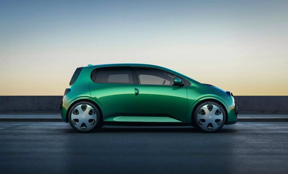 Respetando muchos de rasgos de diseño del Twingo original de primera generación, el Twingo E-Tech rompe con su inspiración original al cambiar la carrocería de tres a cinco puertas, recortando un poco las puertas delanteras para darle mayores dimensiones a las puertas de la banca trasera. También se insertó un hombro deprimido de bonito diseño en la parte inferior, que agrega una estética diferente al carro conocido. Sin embargo, mantiene el cubre chapa voladizo, un clásico inmortal del Twingo, que se respetó también con el diseño de los espejos.