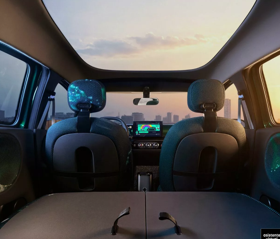 En un guiño al Twingo clásico que llegó a ofrecerse con gran techo corredizo manual, con una experiencia diferente para el habitáculo, el Twingo E-Tech vendrá con un techo panorámico para conectar a los pasajeros con la luz y el paisaje mientras se recorren los caminos.